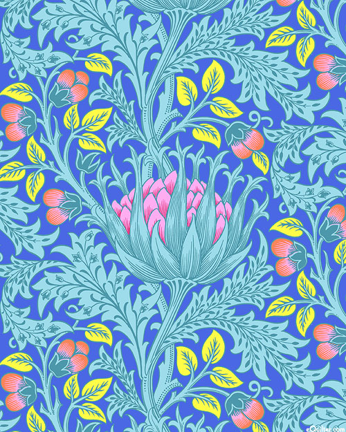The timeless designs of William Morris are together again in this quaint collection. Larger flowers are about 6", 'Artichoke' from the 'Kaffe x Morris & Co.' collection by Kaffe Fassett and The Original Morris & Co. for Free Spirit.