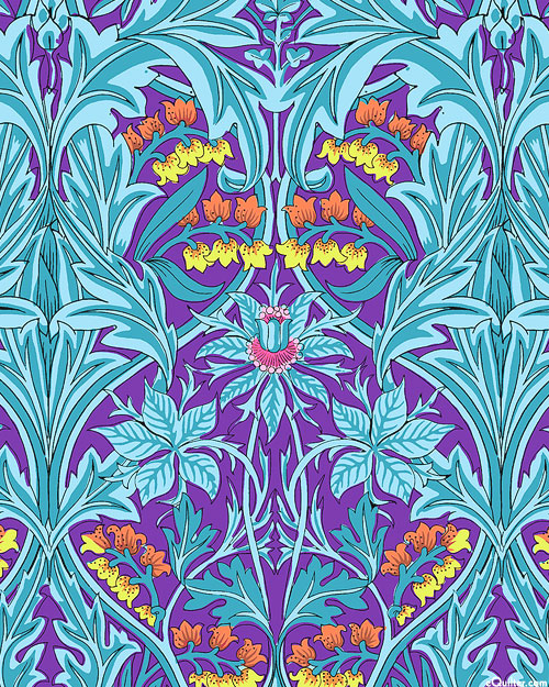 The timeless designs of William Morris are together again in this quaint collection. Horizontal repeat is about 5-1/2", 'Bluebell' from the 'Kaffe x Morris & Co.' collection by Kaffe Fassett and The Original Morris & Co. for Free Spirit.