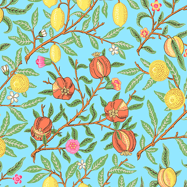 The timeless designs of William Morris are together again in this quaint collection. Larger fruit is about 1-3/4", 'Fruit' from the 'Kaffe x Morris & Co.' collection by Kaffe Fassett and The Original Morris & Co. for Free Spirit.