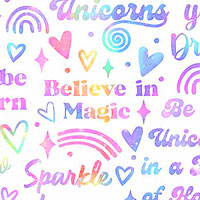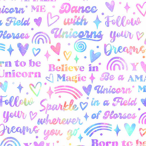 Taller text is about 1", from the 'Sparkle Magic' collection by Deborah Edwards for Northcott Fabrics.