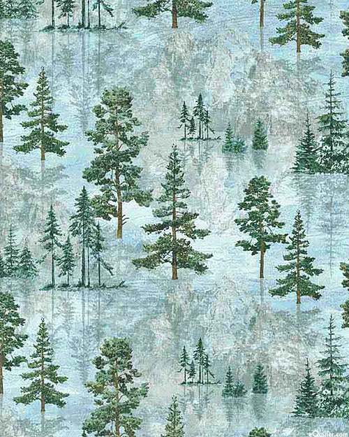 Taller trees are about 3-3/4", from the 'Stonehenge Eagle Pass' collection by Linda Ludovico for Northcott Fabrics.