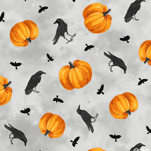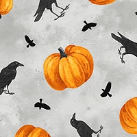 Larger pumpkins are about 2", from the 'Spellbound' collection by Deborah Edwards for Northcott Fabrics.