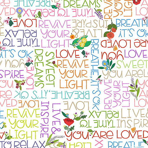 Digitally printed, taller letters are about 1/2", 'Time To Heal' from the 'Retreat Yourself' collection by Emma Schonenberg for Michael Miller Fabrics.