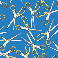Larger scissors are about 2", 'A Cut Above' from the 'Mess Maker' collection by The Paper Curator for Michael Miller Fabrics.