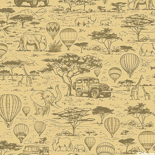 Larger vehicles are about 3", 'Safari Landscape' from the 'Safari' collection by Michael Miller Fabrics.