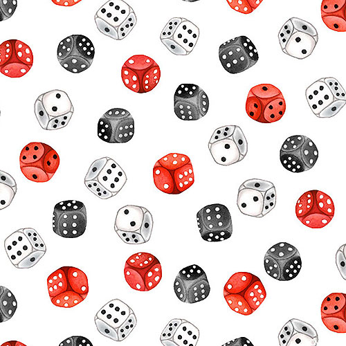 Dice are about 3/4", 'Roll With It' from the 'Game On' collection by Louise Nisbet for Michael Miller Fabrics.