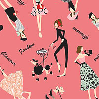Taller figures are about 3-3/4", 'Fashionista Diary' from the 'Fashionista' collection by Michael Miller Fabrics.