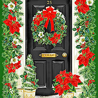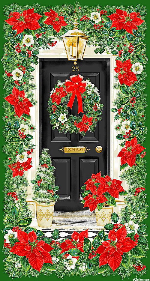 24" panel, with gold metallic, 'Knock Knock' from the 'Tis The Season collection by Michael Miller Fabrics.
