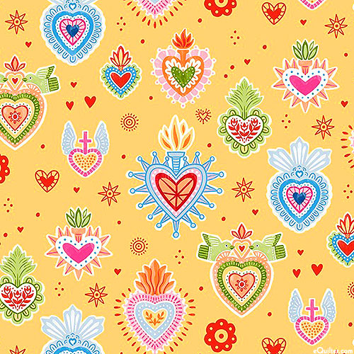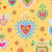 Larger hearts are about 2", 'Folk Charms' from the 'Fiesta' collection by Monkey Mind Design for Michael Miller Fabrics.