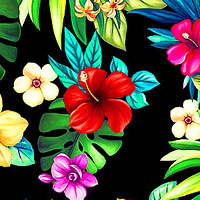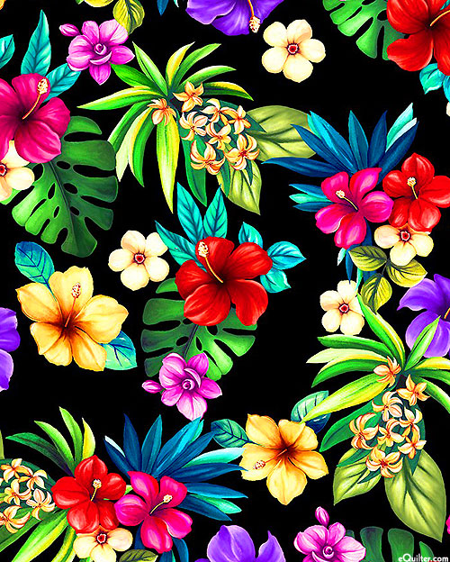 Digitally printed, larger flowers are about 2-3/4", 'Aloha' from the 'Let's Get Tropical' collection by Michael Miller Fabrics.