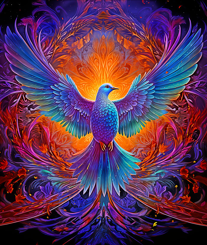 The captivating form of an intricately adorned dove emerges from delicately illustrated patterns reminiscent of those found in mandalas and zentangle designs. Digitally printed, 36" panel, 'Magical Dove' by the Rubin Design Studio, designed exclusively for eQuilter.