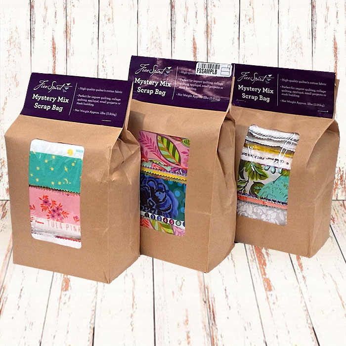Attention Scrappy Quilters! Free Spirit Mystery Scrap Bag, approximately 2 lb. Assorted Free Spirit designer fabric cuts vary in size, no smaller than 2" wide. Perfect for improv quilting, collage quilting, applique, small projects or stash building. Sew them together, cut them up, then re-arrange and sew together again. The colorful combinations are endless! Limited quantities. Every pack is different.