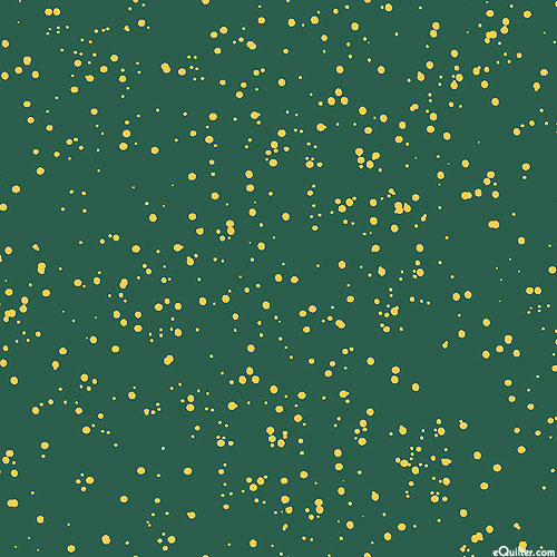 A metallic spatter of speckled spots fall across the design like droplets of rain on a window. Larger dots are about 1/16", with gold metallic, from the 'Sparkle' collection by P&B Textiles.