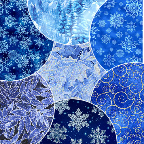 A flurry of frosty blue fabrics are sure to lend a spark of winter's charm to your next project! Fabrics may vary slightly from image shown.