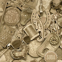 A kitschy spread of various odds and ends are scattered across this dazzling tonal design. Digitally printed, larger objects are about 4-1/2", from the 'Living Color' collection by Aimee Stewart for Michael Miller Fabrics.