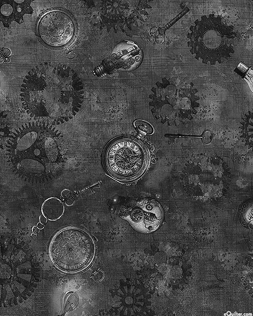 Quilting Treasures Steampunk Halloween - Machinery - Pepper Black