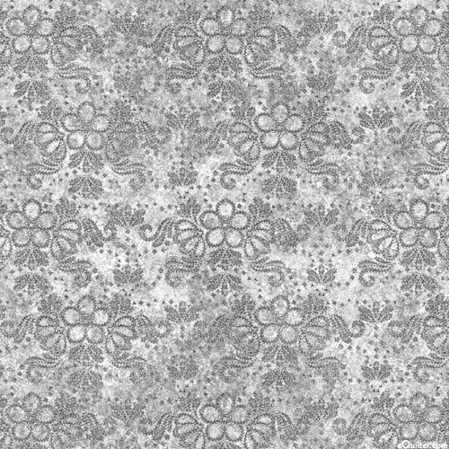 Regal embroidery patterns accented in flowers and finery lend a royal charm to this elegant tonal. Digitally printed, larger flowers are about 3/4", from the 'In Stitches' collection by Dan Morris for Quilting Treasures.