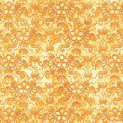 Regal embroidery patterns accented in flowers and finery lend a royal charm to this elegant tonal. Digitally printed, larger flowers are about 3/4", from the 'In Stitches' collection by Dan Morris for Quilting Treasures.