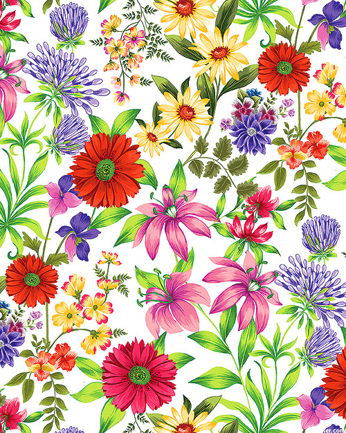 A lush landscape of flourishing flowers coalesce to create a captivating garden gala of texture and tone. Digitally printed, larger flowers are about 2-1/2", 'Inspired Blooms Floral' from the 'Inspired Blooms' collection by Shannon Roberts for Benartex Fabrics.