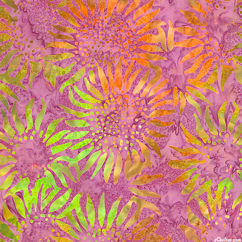 Sunflower blissfully blooming in the cool Autumn sun are depicted in vivid hues within mottled batik textures. Batik, larger flowers are about 4-1/4", 'Sunflowers' from the 'Bali Sunflower Daze' collection by Benartex Fabrics.