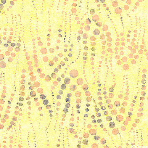 Bubbly shapes ebbing and flowing with the passing of the ocean's waves are depicted in vivid hues within mottled batik textures. Batik, larger dots are about 3/8", 'Bubbly' from the 'Bali Sunflower Daze' collection by Benartex Fabrics.