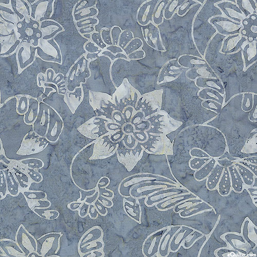 Benartex Fabrics Bali Rumba - Solo Floral Batik - Steel Gray