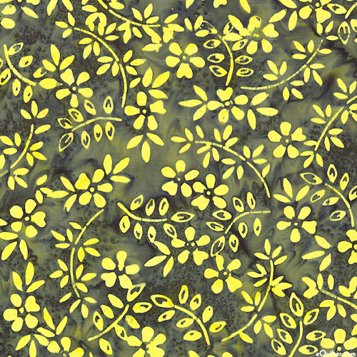 Lush florals tossed in the air are depicted in vivid hues within mottled batik textures. Batik, larger flowers are about 3/4", 'Forget Me Not' from the 'Bali Rumba' collection by Benartex Fabrics.
