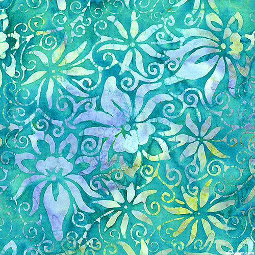 Benartex Fabrics Bali Samba - Orchids Batik - Peacock Blue