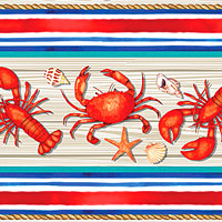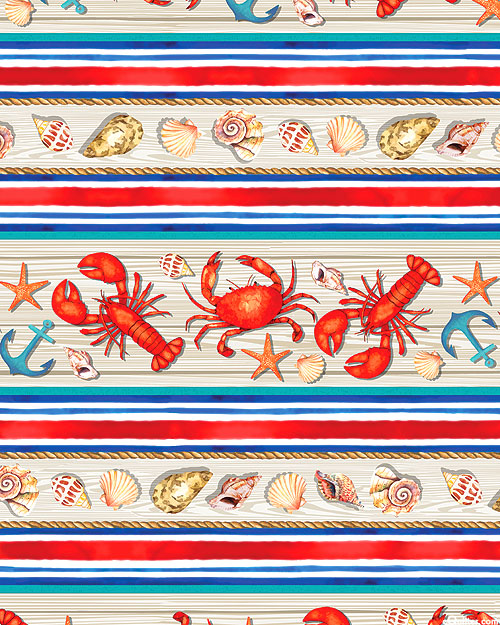 Digitally printed, wider stripes are about 4", stripes run the length of the fabric, 'Marine Stripe' from the 'High Tides' collection by Nicole DeCamp for Benartex Fabrics.