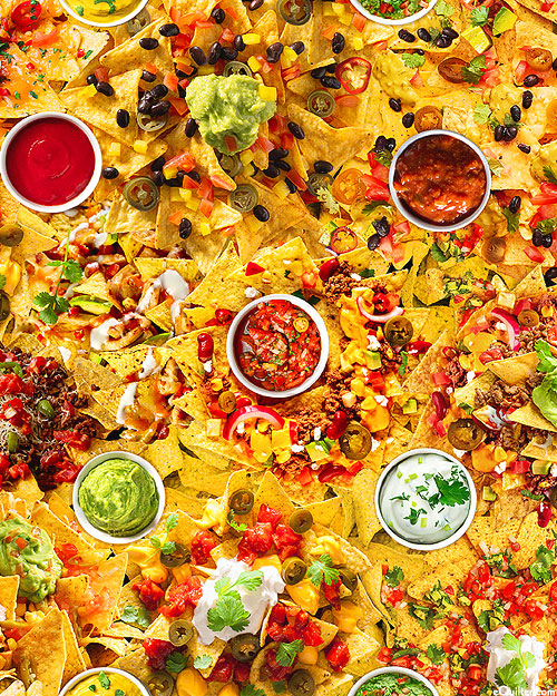 This print brings the perfect spread of chips & dips for a fiesta. Digitally printed, larger bowls are about 1-3/4", 'Loaded Nachos Supreme' from the 'In Queso Emergency' collection by Timeless Treasures.