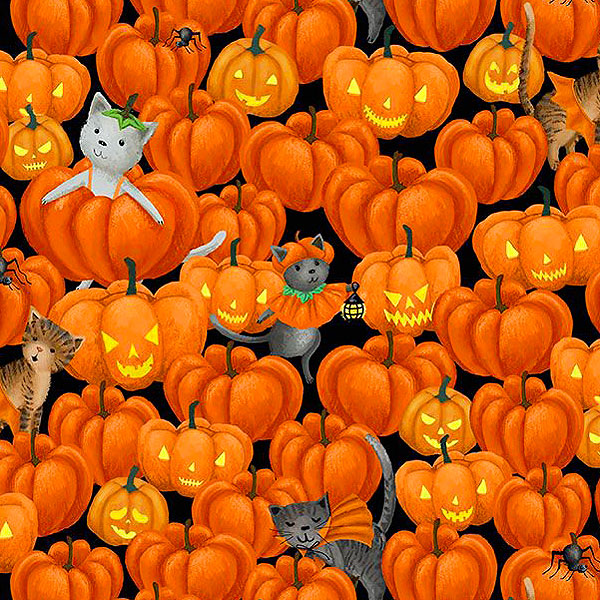Adorable kitty cats are seen frolicking together in a pumpkin patch in this fun and festive Halloween-themed print. Digitally printed, kitties are about 1-1/2", 'Freak Meowt' from the 'Purranormal' collection by Dear Stella, a division of Timeless Treasures.