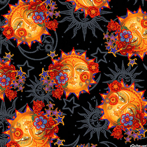 David Galchutt's iconic art style brings this stunning design to life as stylized suns with expressive faces are scattered across this charming design. Digitally printed, suns are about 1-3/4", 'Sun' from the 'Moon And Sun' collection by David Galchutt for Benartex.