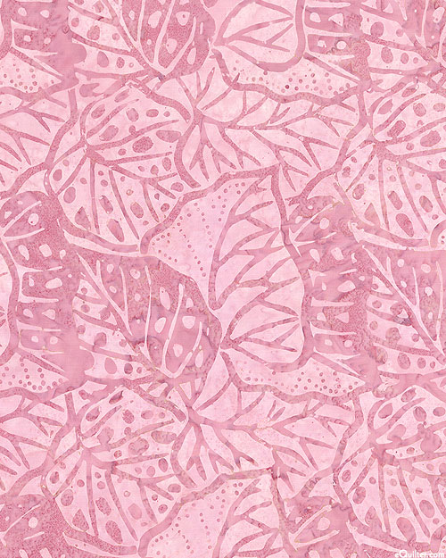 Subtle shapes of monstera leaves make their home atop this luscious batik. Batik, larger leaves are about 5-1/4", 'Monstera' from the 'Bali Sweet Rose' collection by Benartex Fabrics.