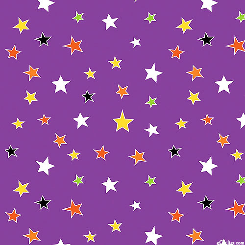 Starry shapes come to life in a vibrant dance of color and shadow across this lively design. Larger stars are about 1/2", with glow-in-the-dark, 'Glowing Stars' from the 'Glow-O-Ween' collection by Kanvas Studio for Benartex Fabrics.