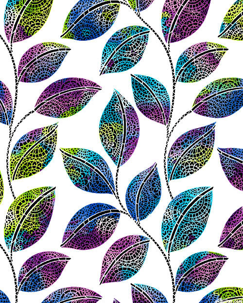 Leafy fronds composed of mosaic tiles lend a natural elegance to this dazzling design. Larger leaves are about 2-1/2", 'Mosaic Leaves' from the 'Go With The Flow' collection by Ann Lauer of Grizzly Gulch Gallery for Benartex Fabrics.