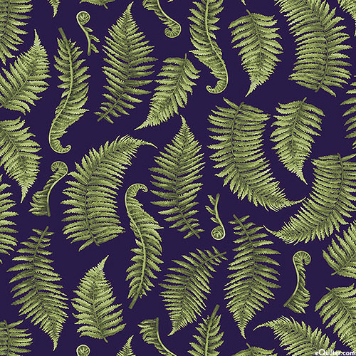 Verdant ferns are scattered against a solid background in this lush and leafy print. Digitally printed, larger fronds are about 2", 'Ferns' from the 'Be Your Best Elf' collection by Dear Stella, a division of Timeless Treasures.