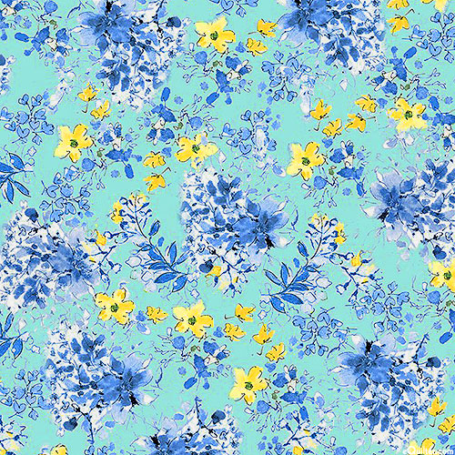 A lush landscape of flourishing flowers coalesce to create a captivating garden gala of texture and tone. Digitally printed, larger bouquets are about 1-1/4", 'Charming Bouquets' from the 'Blue Muse' collection by Michael Miller Fabrics.