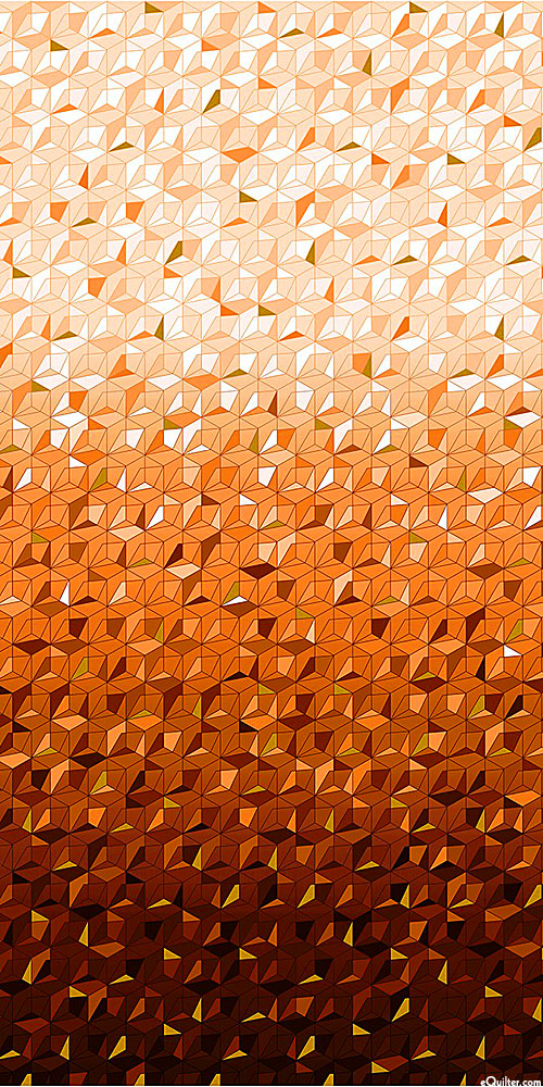 An abstract array of geometric shapes creates a captivating cascade of color and shadow across this stunning ombre design. Larger diamonds are about 1-3/4", ombre fades from selvedge to selvedge, with gold metallic, from the 'Refractions' collection by Michael Miller Fabrics.
