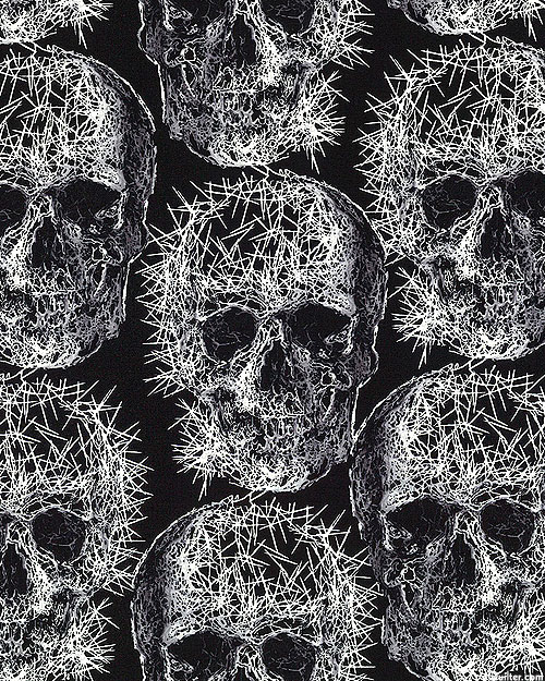 Skull motifs that are created using an interesting linear effect in a dark palette and will certainly be another 'must have' for your stash of Halloween related prints. Horizontal repeat is about 8", 'Freak Out' from the 'Halloween' collection by Michael Miller Fabrics.