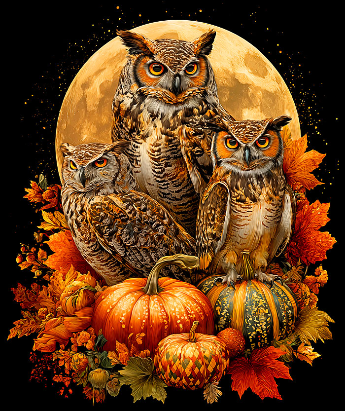 In this panel, a trio of handsome owls perch atop a bountiful harvest spread of pumpkins and other Autumnal motifs as a full moon beams high in the sky overhead. Digitally printed, 36" panel, 'Harvest Moon Owls' by the Rubin Design Studio, designed exclusively for eQuilter.