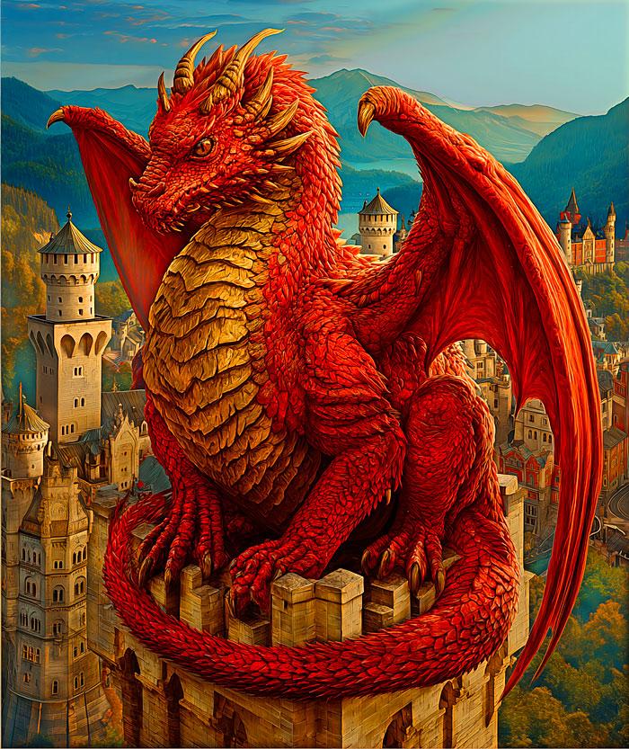 Rubin Design Studio Castle Dragon - Multi - 36" x 44" PANEL
