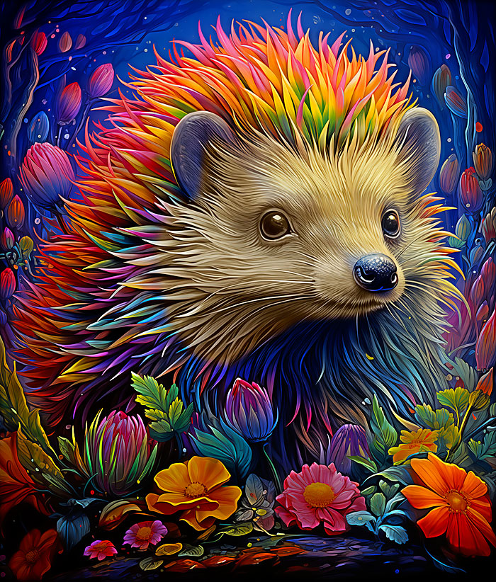 The captivating form of an intricately adorned hedgehog emerges from delicately illustrated patterns reminiscent of those found in mandalas and zentangle designs. Digitally printed, 37" panel, 'Magic Hedgehog' by the Rubin Design Studio, designed exclusively for eQuilter.