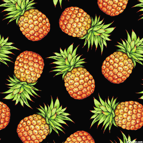 Benartex Fabrics Paradise Awaits - Pineapples - Black