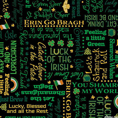 Quilting Treasures St. Paddy's Cheery - Lucky Words - Black