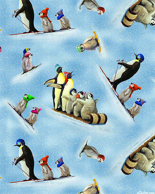Penguin families play together in the snow enjoying a variety of winter activities including skiing, snowboarding, and sledding! Larger penguins are about 2-1/2", from the 'Winter Joy' collection by Lucia Heffernan for Elizabeth's Studio.