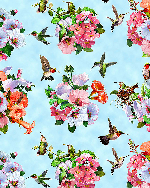 Small hummingbirds flutter between elegant bouquets of flowers in this delightful design. Larger bouquets are about 4-1/2", from the 'Dating Game' collection by Mark Kelso and Bradley Jackson for Elizabeth's Studio.