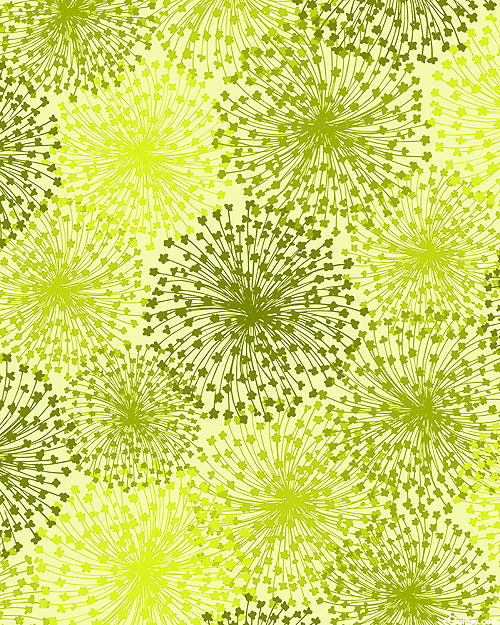 Large dandelion puffs are packed together, like little bursts of tonal color. Please prewash and allow for up to 7% shrinkage. 108" wide quilt backing, larger dandelions are about 7-1/2", from the 'Dandelion Dreams 108"' collection by Kanvas Studio for Benartex.