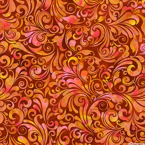 In The Beginning Fabrics Prism II - Lush Swirls - Cinnamon Red