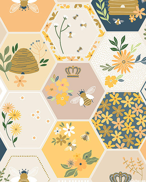 Digitally printed, larger hexagons are about 4-1/4", 'To Bee Or Not To Bee' from the 'The Bees Knees' collection by Dear Stella, a division of Timeless Treasures.