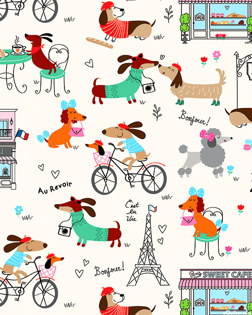 Benartex Fabrics Parisian Pups - Paris Life - Cream
